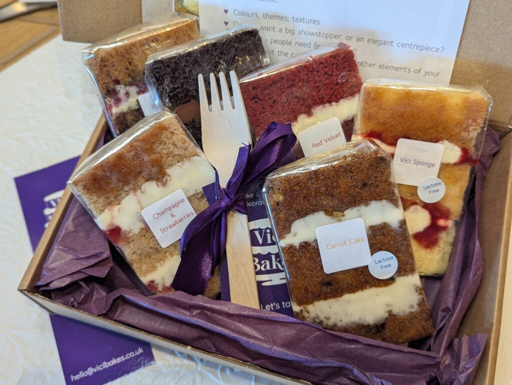 “It was incredibly easy to organise everything with Vici! We had a great evening doing the cake tasting, which was sent quickly. Vici was very flexible with the design and was able to give recommendations. Vici arrived early on the day, meeting my mum to ensure that we would be happy with the designs. She used the same flowers as my bouquet to make the most beautiful cake. All the guests commented on the delicious flavour (we went with raspberry ripple) and we’ve frozen what was left over and can’t wait to get stuck in at a later date! Thank you so much, Vici!”